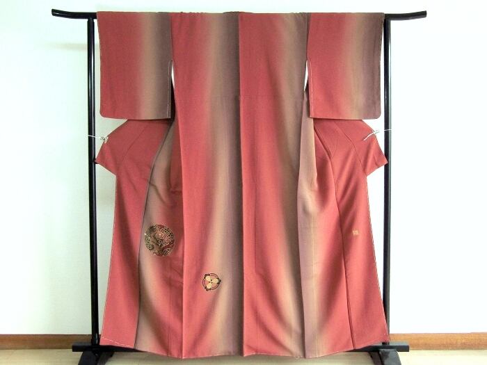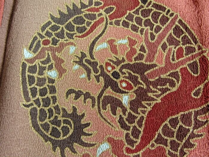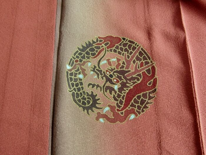 くすんだレンガ色グラデェーションに龍の柄の附下きものです。