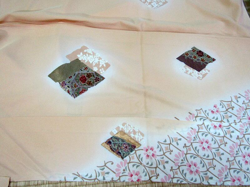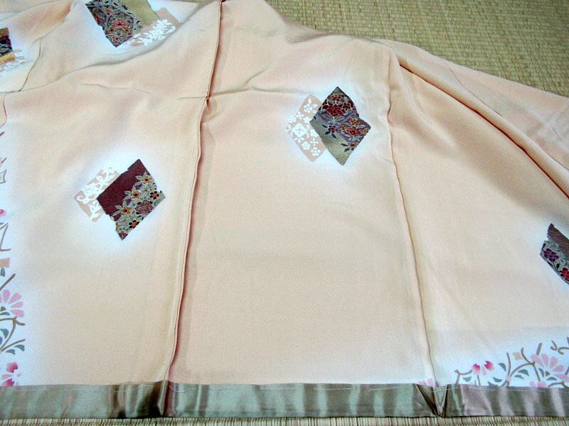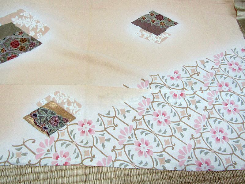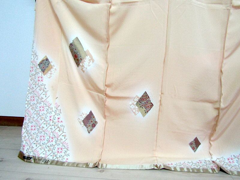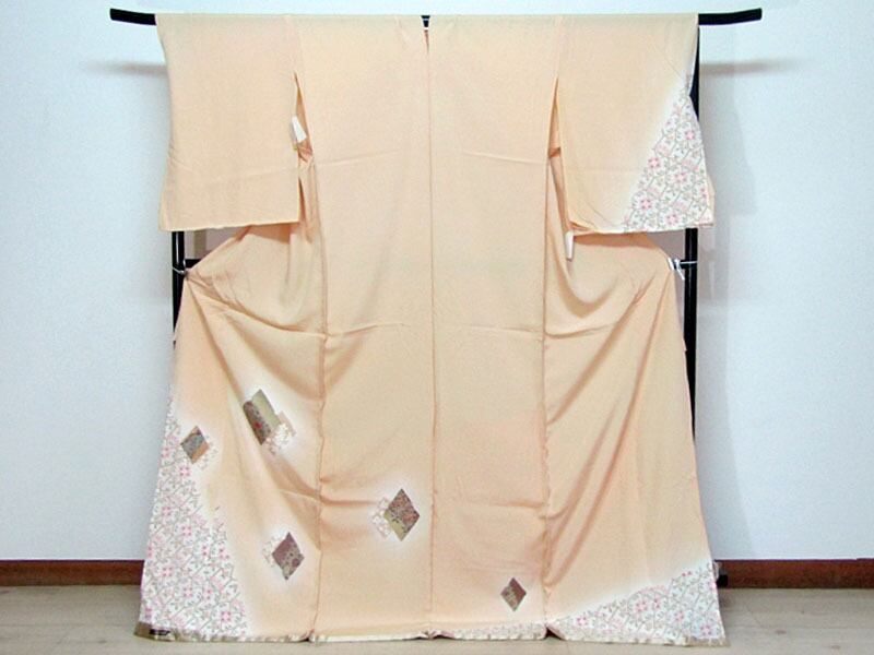みかん色系?縫取り縦菱に裾斜め取りの附下です