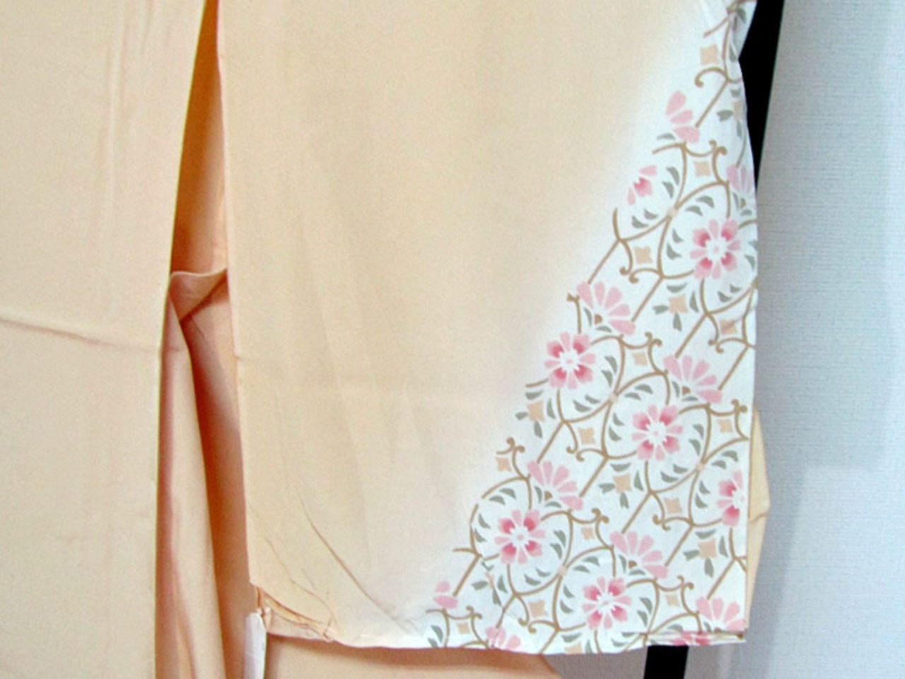 美しいみかん色系の附下には、縦菱(たてひし)と裾斜め取りが施され、